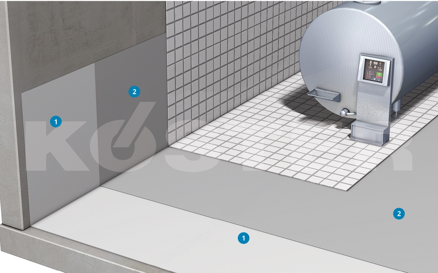 For the protection of concrete surfaces against acids the first step is to coat the surface with the negative side waterproofing KOSTER NB 1 Grey or the faster version KOSTER NB 1 “fast”. The acid protection itself is made with KOSTER Silicate Mortar (also suitable for damp substrates) or KOSTER PSM (suitable for dry substrates and easy to apply).