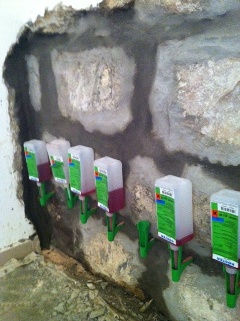 Application of KÖSTER KD system to waterproof the walls of a basement of a house which is about 500 years old. A horizontal barrier with KÖSTER Crisin 76 was also installed.
