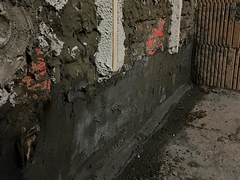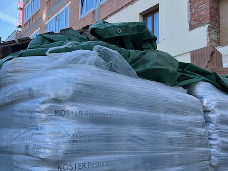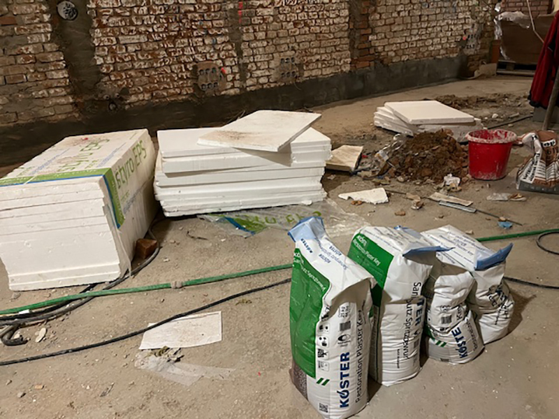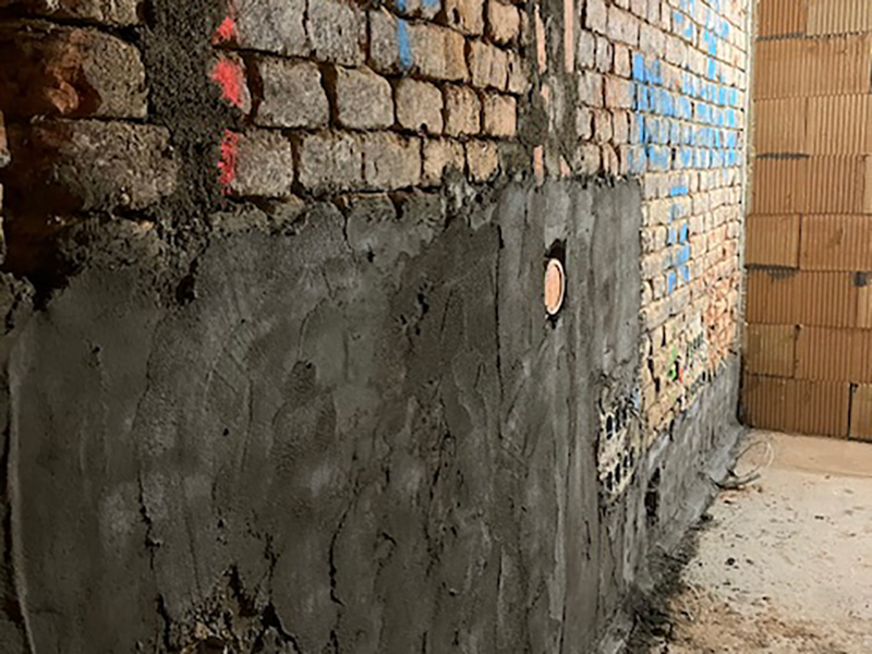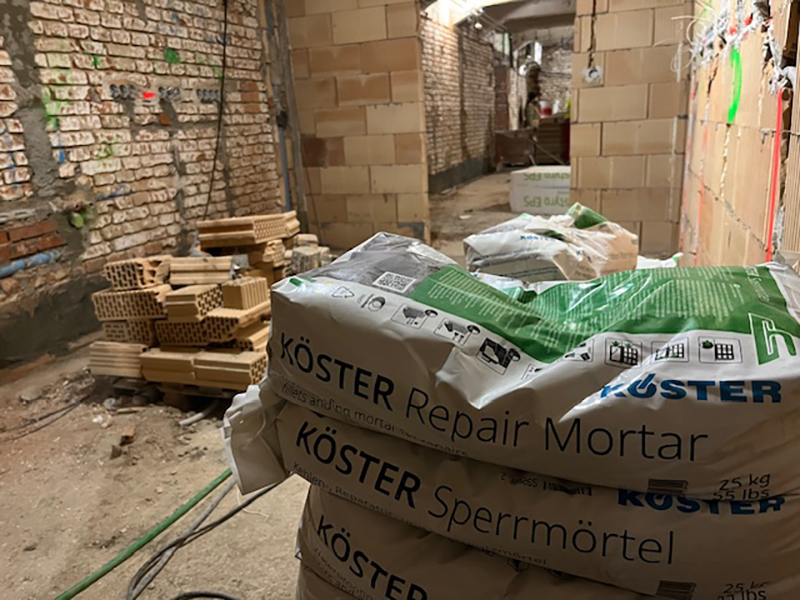 After renovation, the basement rooms in building ‘D’ should be fully usable. This is only possible with a comprehensive renovation, which was successfully implemented here with the KÖSTER Mautrol 2C horizontal barrier and the KÖSTER Restoration Plaster System.