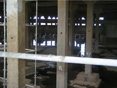Typical damages on the surface of the contrete: Corrosion developed and pushed the concrete covering off