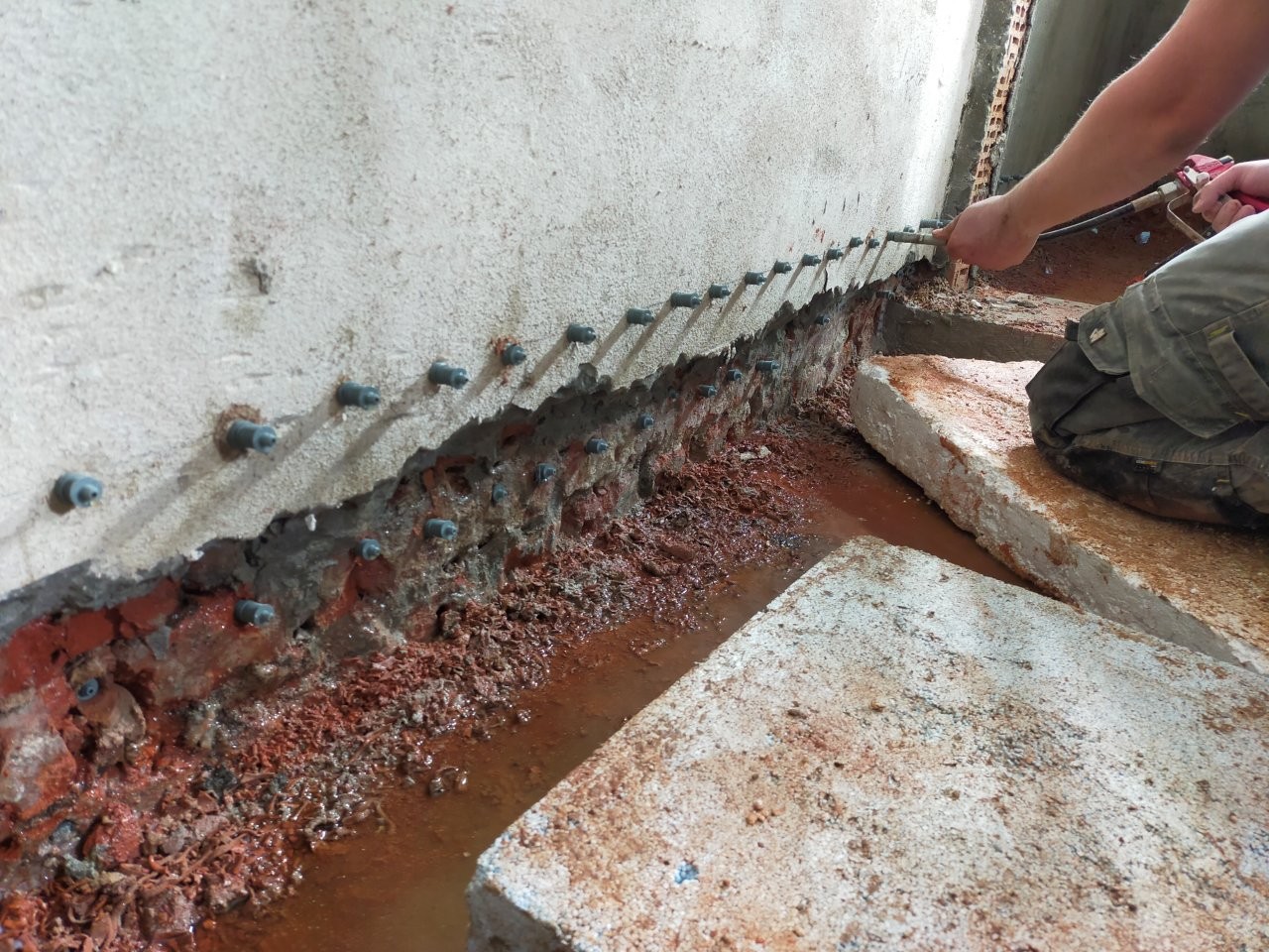 Kompleksowa renowacja i uszczelnienie piwnic kamienicy. Wykonano wtórną izolację poziomą ścian w technice iniekcji ciśnieniowej preparatem KOSTER Mautrol 2K. Ściany zagruntowano preparatem POLYSYLIS TG 500, wykonono hydroizolację krystalizującą KOSTER NB1 oraz system tynków renowacyjnych KOSTER Sanierputz.