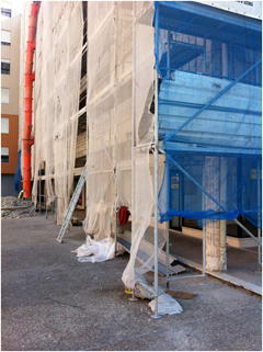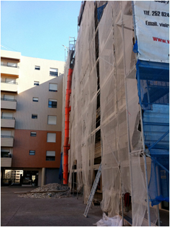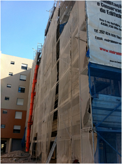 Limpeza e remoção de ceramic antigo, argamassa de colagem e aplicação de endurecedor e estabiulizador de substrato. Aplicação de bi-componenteelasticoem 3000 m2 de fachadasparasubsequenteaplicação de novo revestimento ceramic protector.