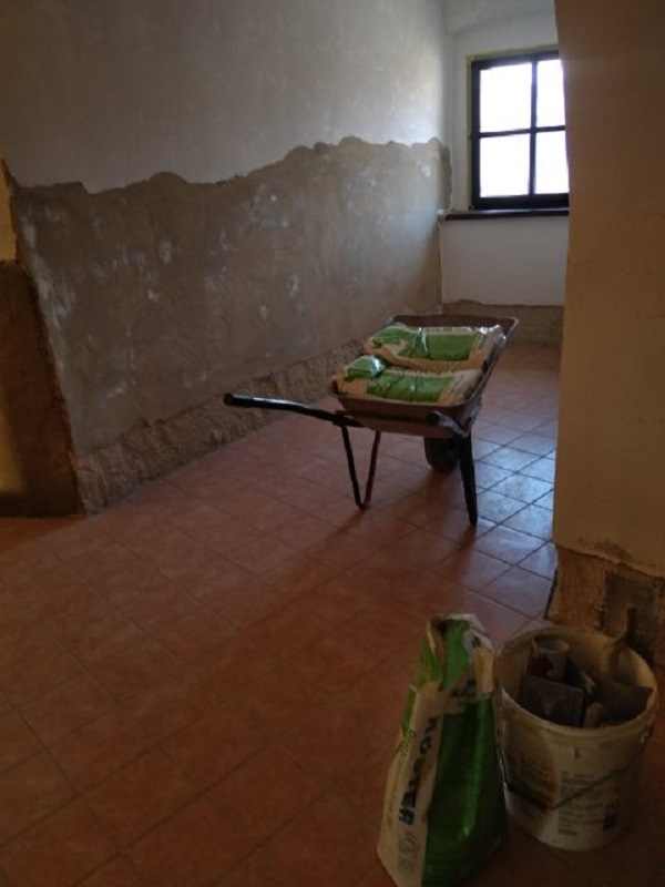 Sanirale so se moške in ženske sanitarije v stolpu gradu Turjak. Najprej je bilo potrebno odstraniti obstoječo keramiko in omet ter primerno očistiti in pripraviti podlago. Očiščena podlaga se za dodatno utrditev podlage najprej impregnira s KÖSTER Polysil TG 500.
