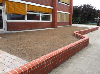 550 m² Sockelabdichtung: Abfräsen der vorhandenen kunststoffvergüteten Abdichtung und des vorhandenen Putzes bis auf tragfähigen Ziegel bis unter Stahlschiene des Sockelputzes. Erste Lage Spritzbewurf als haftbrücke mit KÖSTER Sanierputz 2 schnell im Spritzverfahren, zweite Lage 20 mm KÖSTER Sanierputz 2 schnell, KÖSTER Flex Band K 120 für Wand-Sohle Übergang, dritte Lage in zwei Arbeitsgängen mit mindestens 2 mm Trockenschichtdicke mit KÖSTER NB Elastik grau und Farbbeschichtung mit KÖSTER Silikonfarbe weiss 20 cm bis unter Stahlputzschiene.