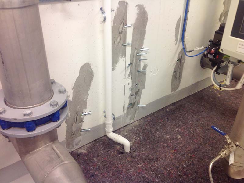 I februar 2017 har vi tettet sprekkene av vanntanken i vannverk i Treungen. Følgende Arbeidet ble utført: Beskytt arbeidsområde med malerteppe og plastfolie • Slipe veggen i område fra sprekkene • Hullene er boret inn i betongveggen og benyttet per hull en super packer • fylte injeksjons harpiks med trykk i sprekk • stengt den hullene med mørtel • fylling av veggflate og etterpå maling med hvit farge
