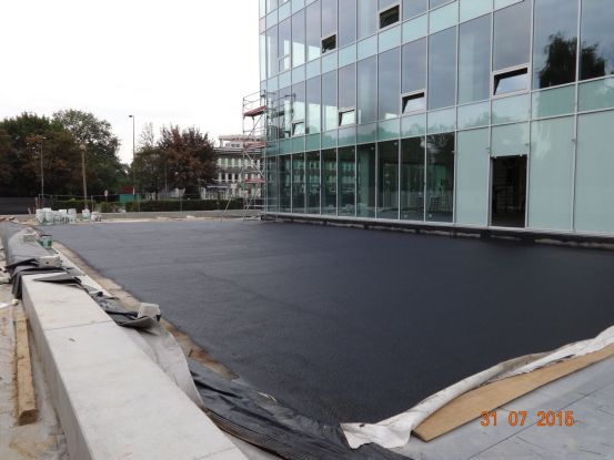 Na ścianach kondygnacji podziemnych wykonano hydroizolację z masy KOSTER KMB Bikuthan 2K. Na stropodachu nad podziemnymi kondygnacjami została wykonana hydroizolacja bitumiczna z masy KMB KOSTER Deuxan 2K z siatką Armierungsgewebe. Podłoże było wczesniej oczyszczone i zagruntowane emulsją bitumiczną KOSTER Bitumenemulsioną. Fasety wykonano z zaprawy KOSTER Sperrmortel, a do wykonania warstwy ochronno-drenażowej wykorzystano Folię SD 3-250. Łączna powierzchnia hydroizolacji ok. 1300 m2.