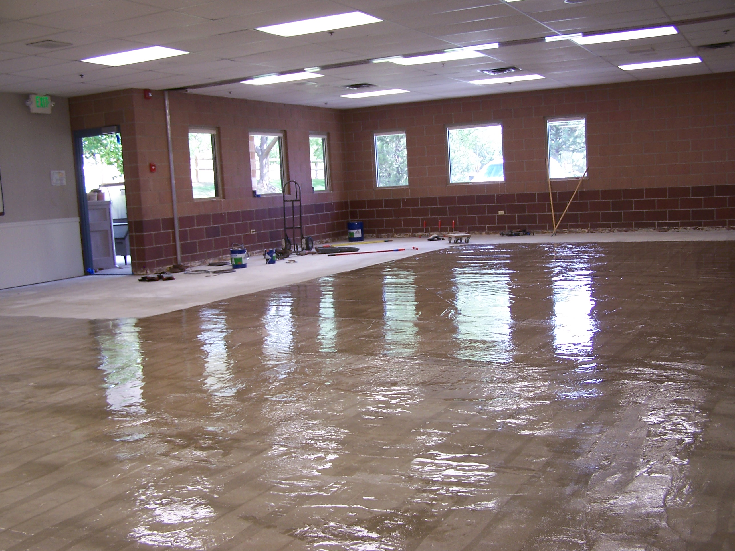 Moisture Mitigation System (Flooring) - The Louisville Recreation & Senior Center had approximately 4800 sq ft of VCT that was failing due to a high moisture and alkalinity condition. After performing testing on core samples it was discovered that the concrete slab had an existing ASR condition. The City of Louisville wanted to update the VCT in several classrooms and activity rooms. The biggest challenge was that the project had to be completed during a shutdown over the course of 6 days. We were able to offer the City of Louisville a warranted solution to their concrete problems. Decor´ Flooring went in and removed the VCT and ground the concrete down by 1/4". After ensuring proper substrate preparation, an underlayment consisting of Rapid Set Cement All 4 mixed with KOSTER SB Bonding Emulsion was applied to provide a new durable concrete cap. The underlayment was then brush blasted to comply with ICRI CSP-2 followed by a coat of KOSTER VAP I 2000 installed at 75 sq ft/gal. The VCT flooring system was then installed. This project was awarded an Award of Merit for Unique Use of Concrete by the Rocky Mountain Chapter of ACI.