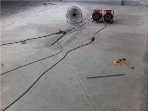 Application of a vapor barrier as preparation for sealing a surface with an epoxy coating.
