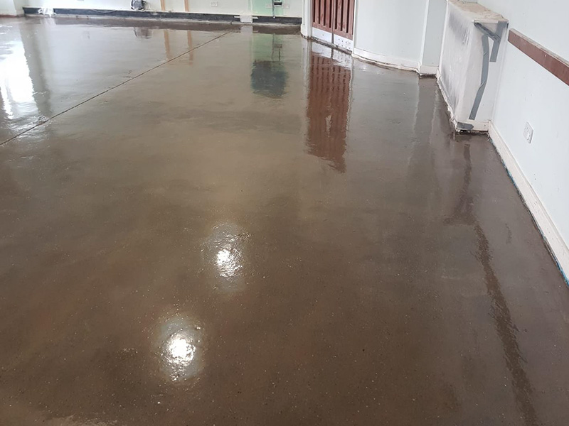 After an extension over 30 years ago, this busy church hall suffered from ongoing moisture vapour problems. A new section of slab was poured to increase the hall area. A DPM was not installed under the old or new floor slab.