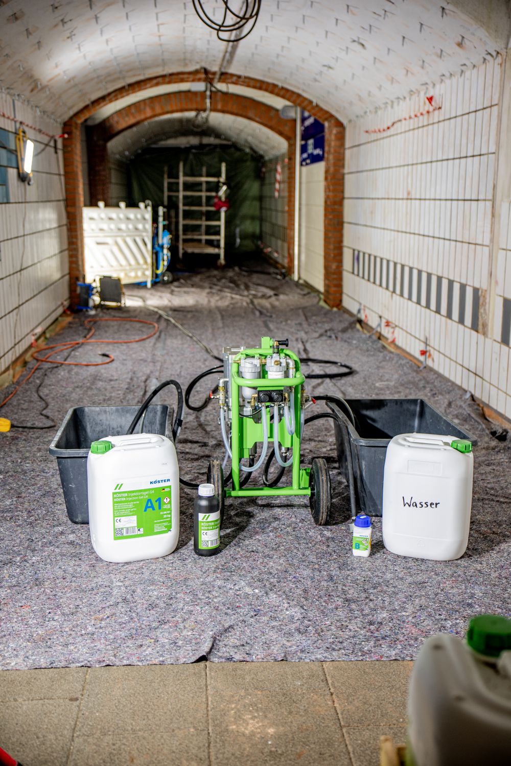 Nach der Injektion wurde die Unterführung zusätzlich durch eine nachträgliche Innenabdichtung mit KÖSTER NB 1 sowie KÖSTER Sanierputz dauerhaft geschützt.